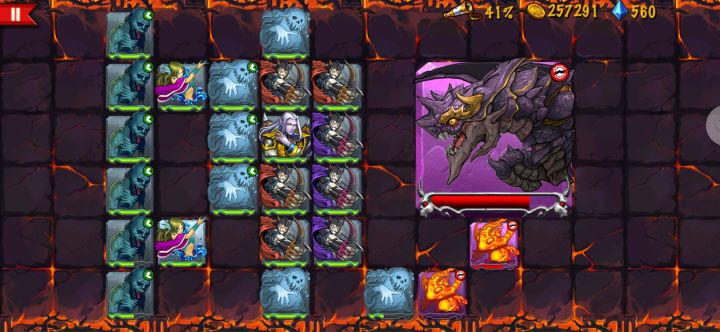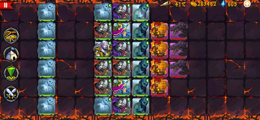 图5—90阵容布置如图2,小鬼魂可以替换成任意随从,之前我是用来扛阿瑞斯伤害的,可以换两个弓手来增加输出,这关开始,主要是无法钞能力买怪,且s级较多,打boss前容易减员,s怪出现顺序,死神—阿瑞斯—火神及黑龙,死神如图二平推,打到阿瑞斯前变换阵型如图三,随后变换阵型如图四打火神以及黑龙,可以做到无伤到boss,boss前调整阵型如图一,靠近boss一列只在第一及第五行放置小鬼炮灰,确保boss输出不波及到输出位置,后面蓝鬼依靠湖仙加速清理火神,火神不出了之后,蓝鬼接力作为炮灰,这样就可以将boss磨死。