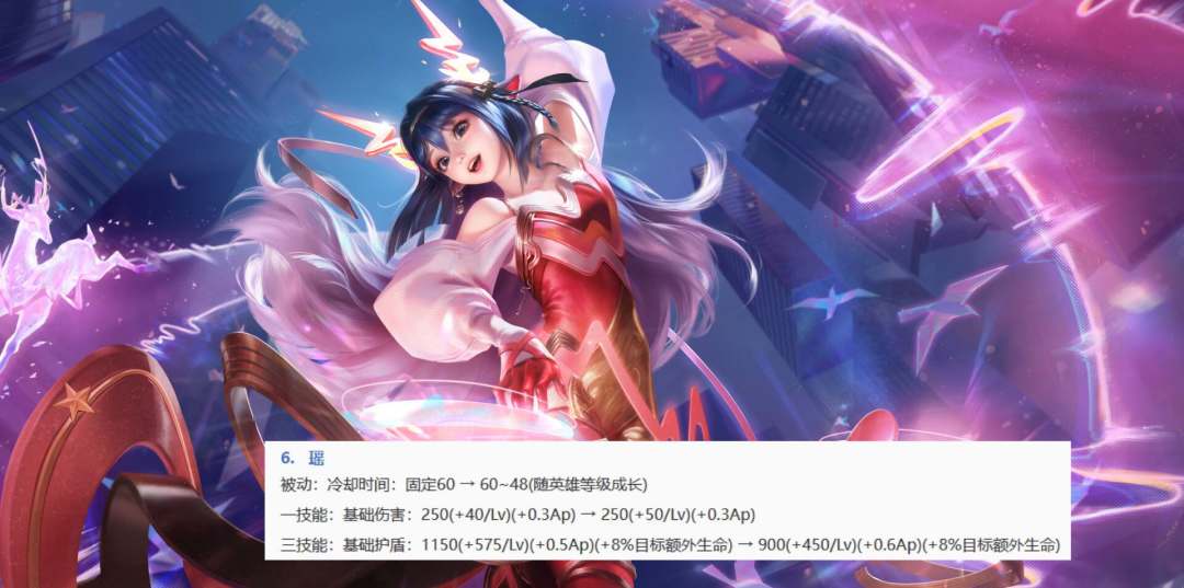 蔡文姬则是削弱了三技能提升的双抗,基础数值和AP加成都有降低,虽然新增了25%目标双抗加成,但是本身蔡文姬都是保护脆皮,脆皮没有出肉的情况下双抗并不高,所以这个加成实际很低。当然,这样改动让蔡文姬大招对坦克的增益更高,但是团战时坦克往往吃不到蔡文姬的大招。
