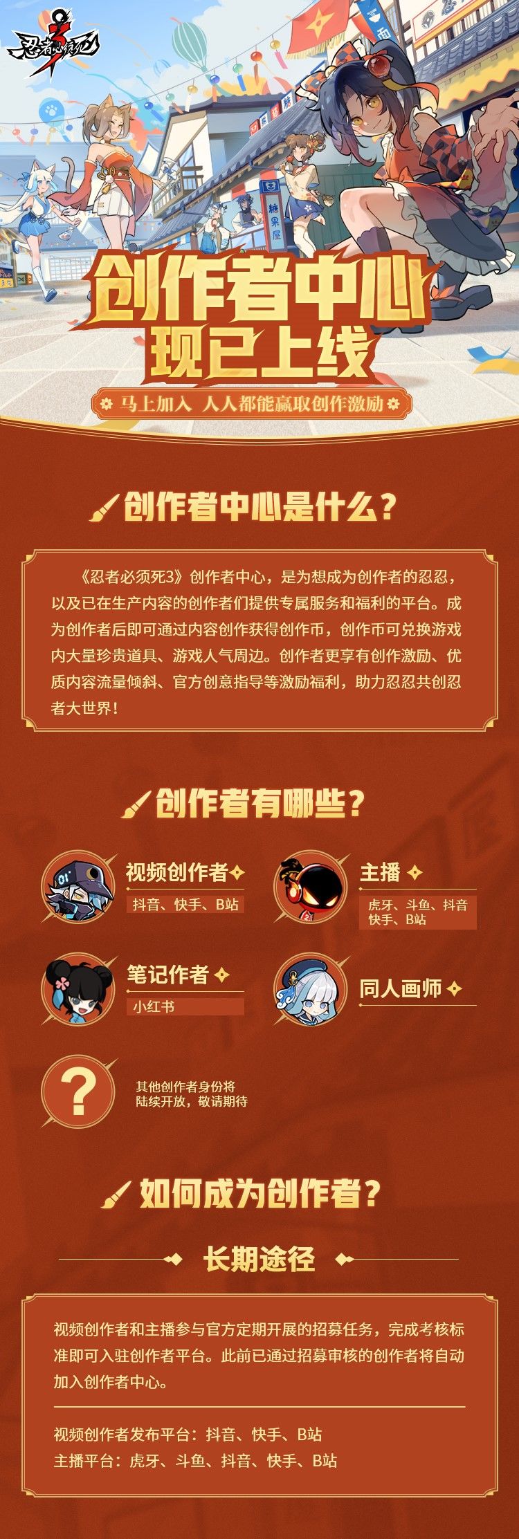 忍3创作者中心正式上线!长线招募开启,创作赢取多重激励!