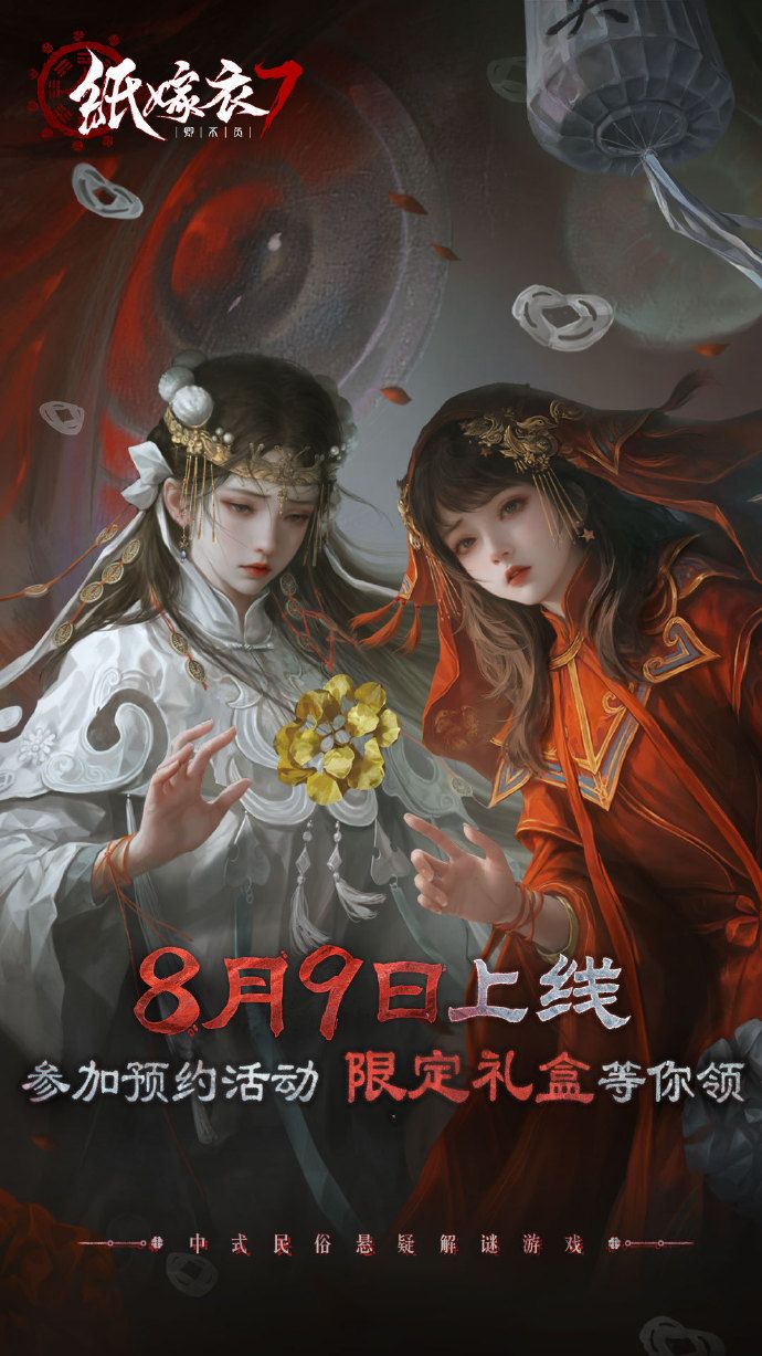 👉中式民俗悬疑解谜游戏《纸嫁衣7卿不负》上线时间正式定档!游戏将于2024年8月9日登陆iOS/安卓平台。