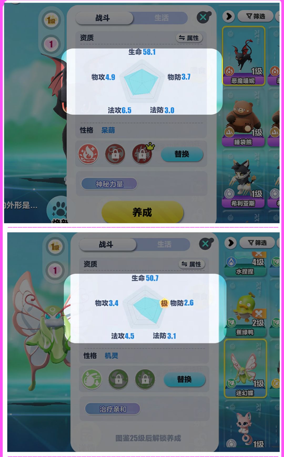 神奇艾比的资质数值各有差异