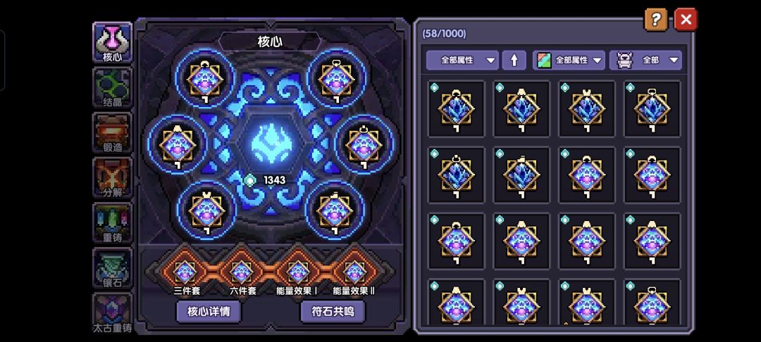 左侧中心的1343便是符文能量