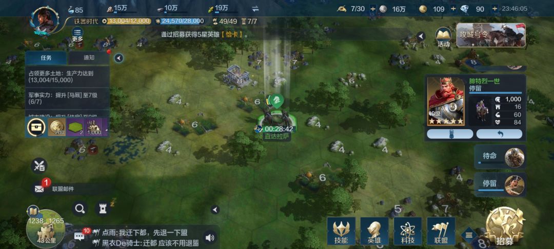 4.看到这里 OIO大 的朋友们已经懂了,瞭望塔之后接着让满编队工大旁边的领土,接着就可以原地驻扎了(回复行军速度就是旁边的小黄条)