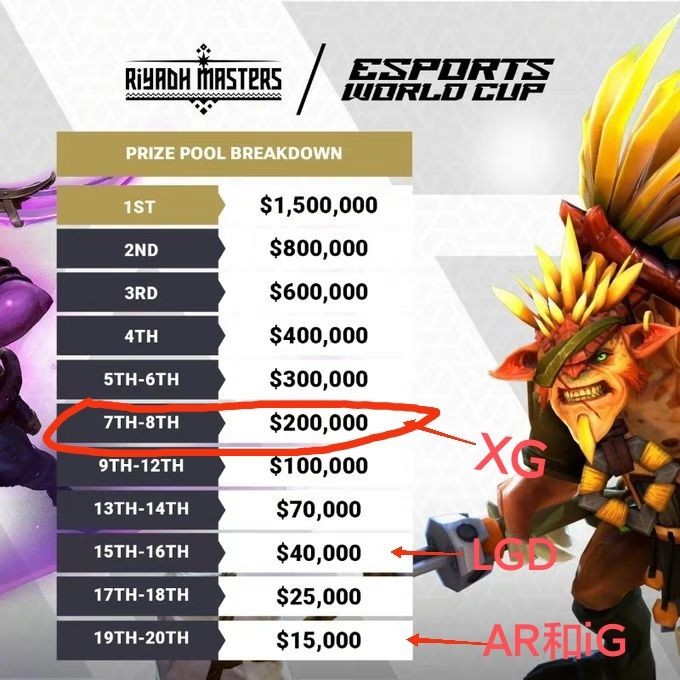 G2xiG和AR,小组赛都没进,垫底,1.5W美金.