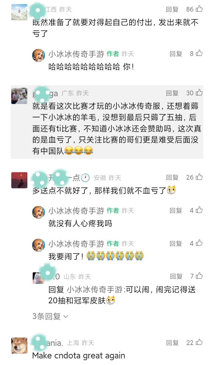 7/19号晚,《小冰冰传奇》夜晚发文《血亏》,因为赞助的4支利雅得大师赛队伍全部淘汰了