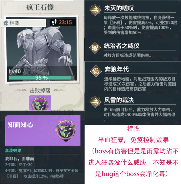 BOSS是吃各种负面buff的 比如说减防 比如说毒 比如说燃烧...但疯王不吃也不知是哪边出错了。