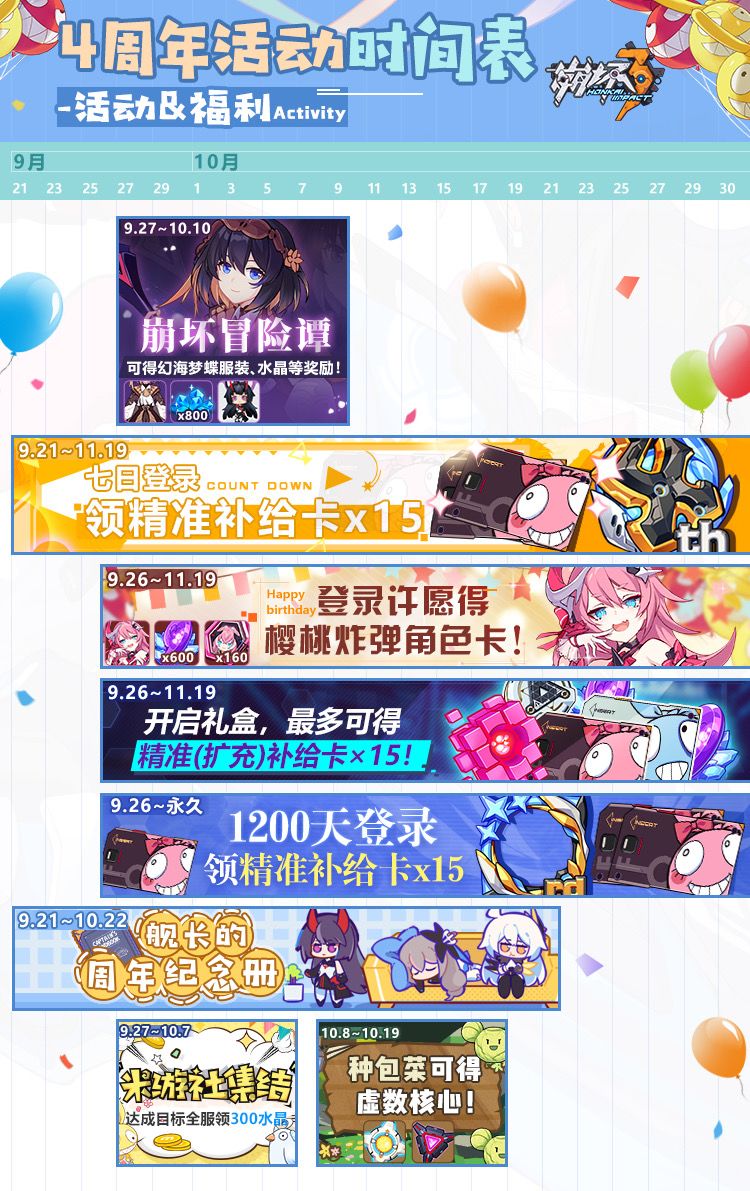 四周年庆典活动即将来袭,周年活动日历奉上!内含多重福利、活动时间表……舰长千万不要错过哦~