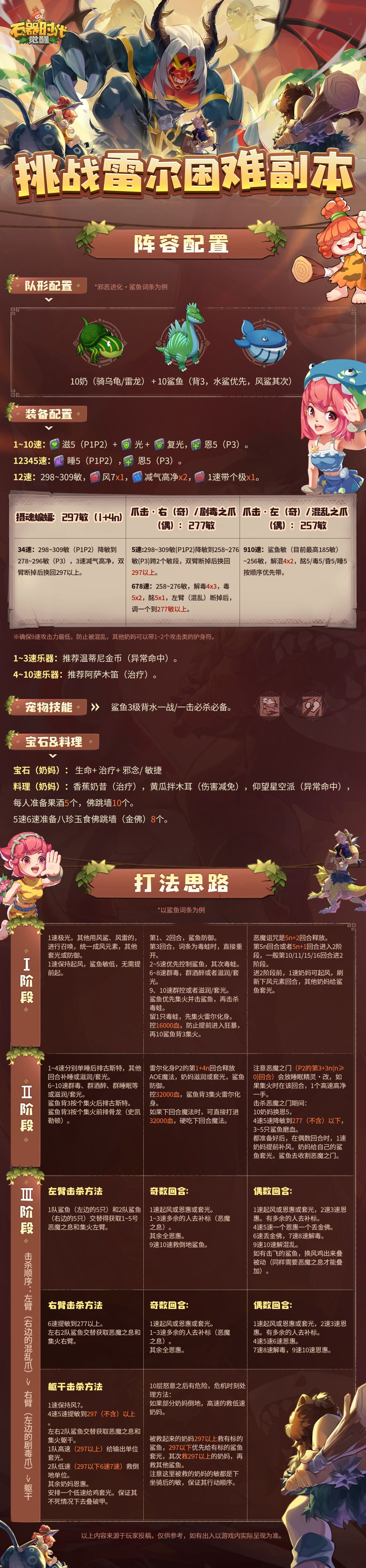 困难十人团本相比普通的要难上几个等级,无论是对阵容的配置还是团队成员合作都提出了更高的要求。挑战雷尔分三个挑战阶段,每个敏段都有不一样的输出,卡敏治疗是关键。一起来看看如何通关,赶紧叫上伙伴们一起实战起来!