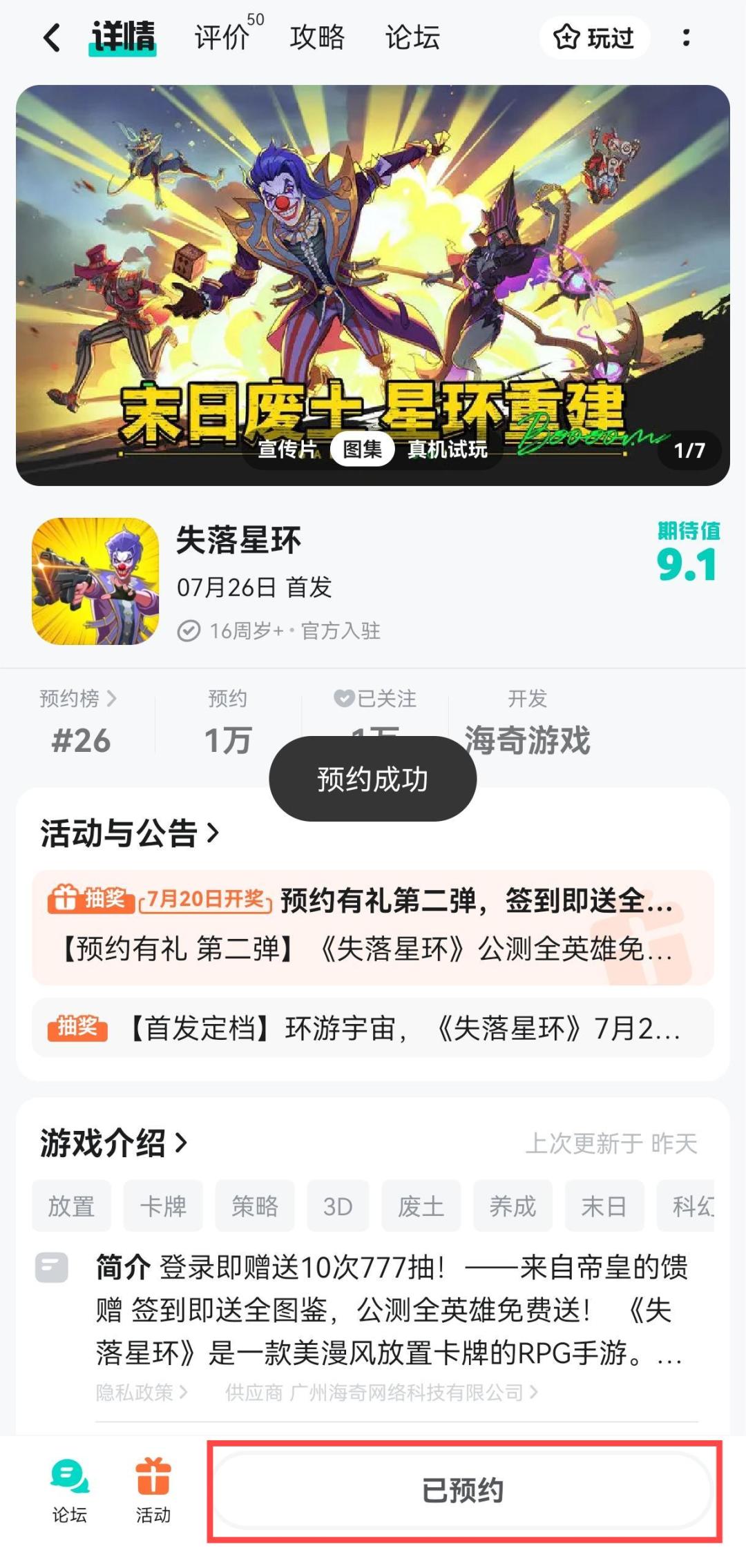 (已开奖)【预约有礼 第三弹】《失落星环》预约破万庆祝!