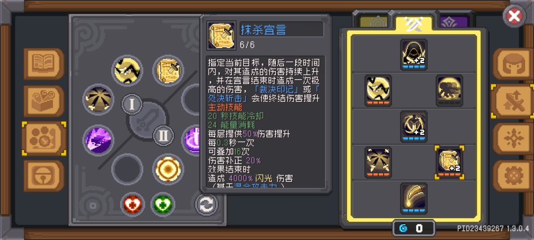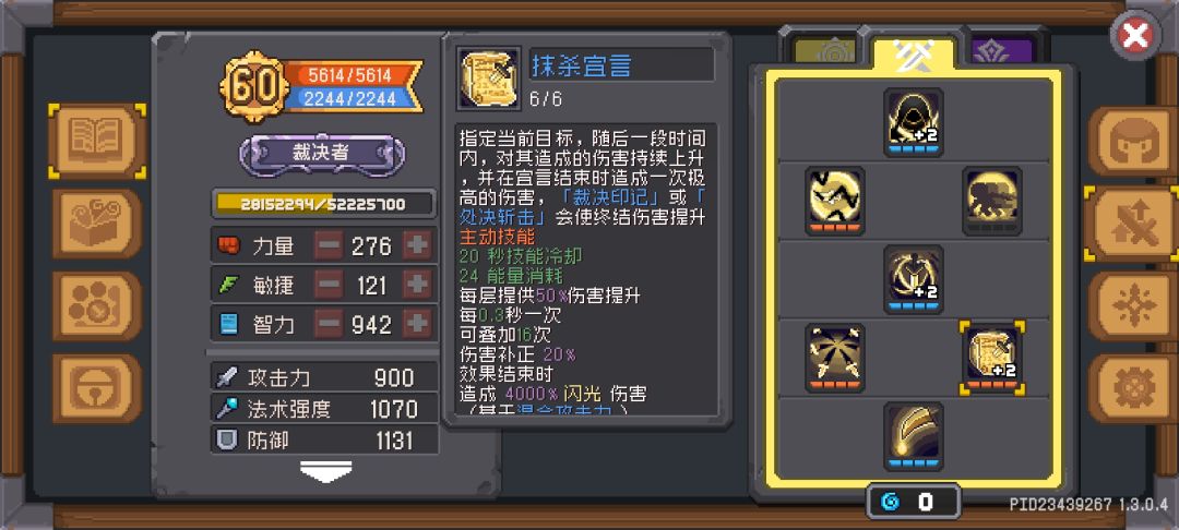 可选:双重打击,扩散(有重弹就够大了,不太推荐),全力突进,光明核心,智力专精(裁决使打的是混伤)
