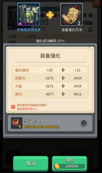 强化从+3级开始会出现失败的风险,一旦失败就会导致装备的强化等级下降。为了避免连续出现强化失败的情况,程序员可以使用祝福的圣水来进行保护。