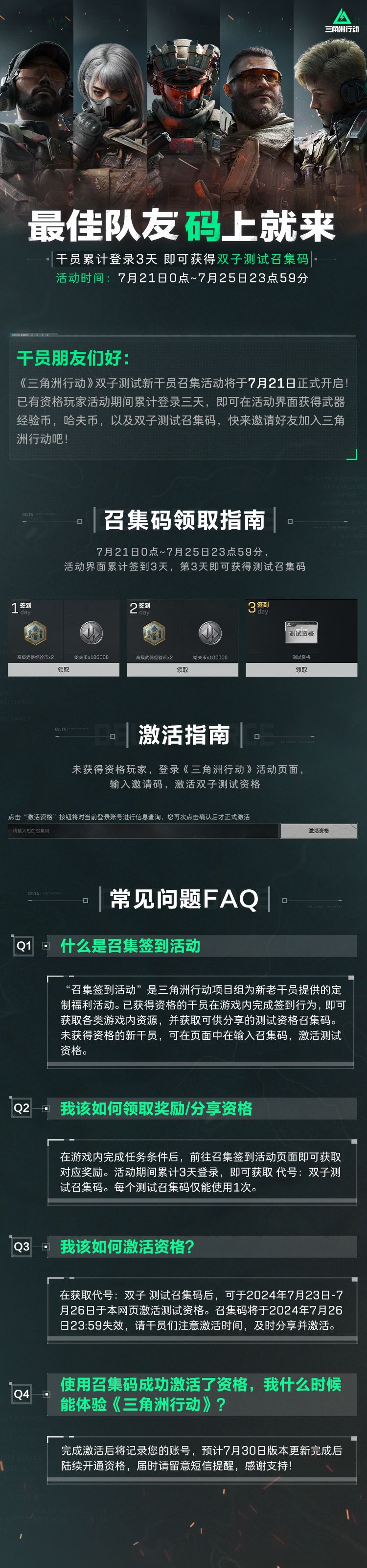 活动期间累计登录3天,即可获得活动“召集码”,你想知道的活动指引与活动问题全在这里~