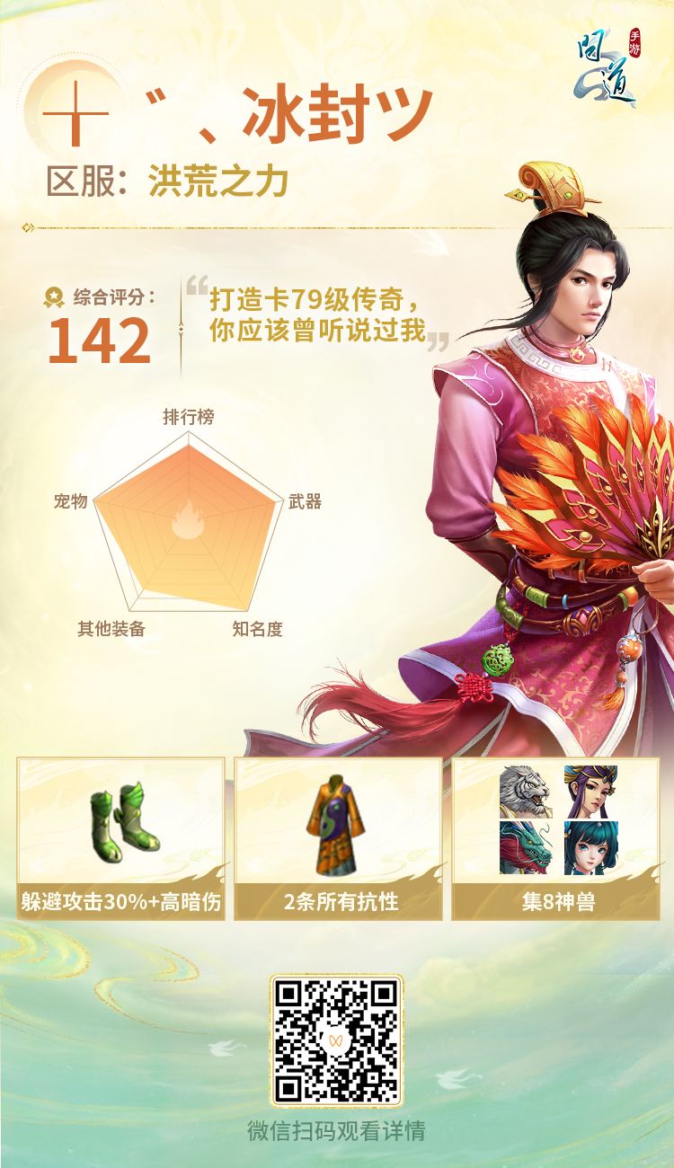 而今天再来分享另外一名熟悉道友的神装,来自【洪荒之力】区组的╁゛﹑冰封ツ!冰封作为全服79级阶段唯一改10暴力火,算得上是卡79级的传奇,几乎统治了79跨服长达2年。
