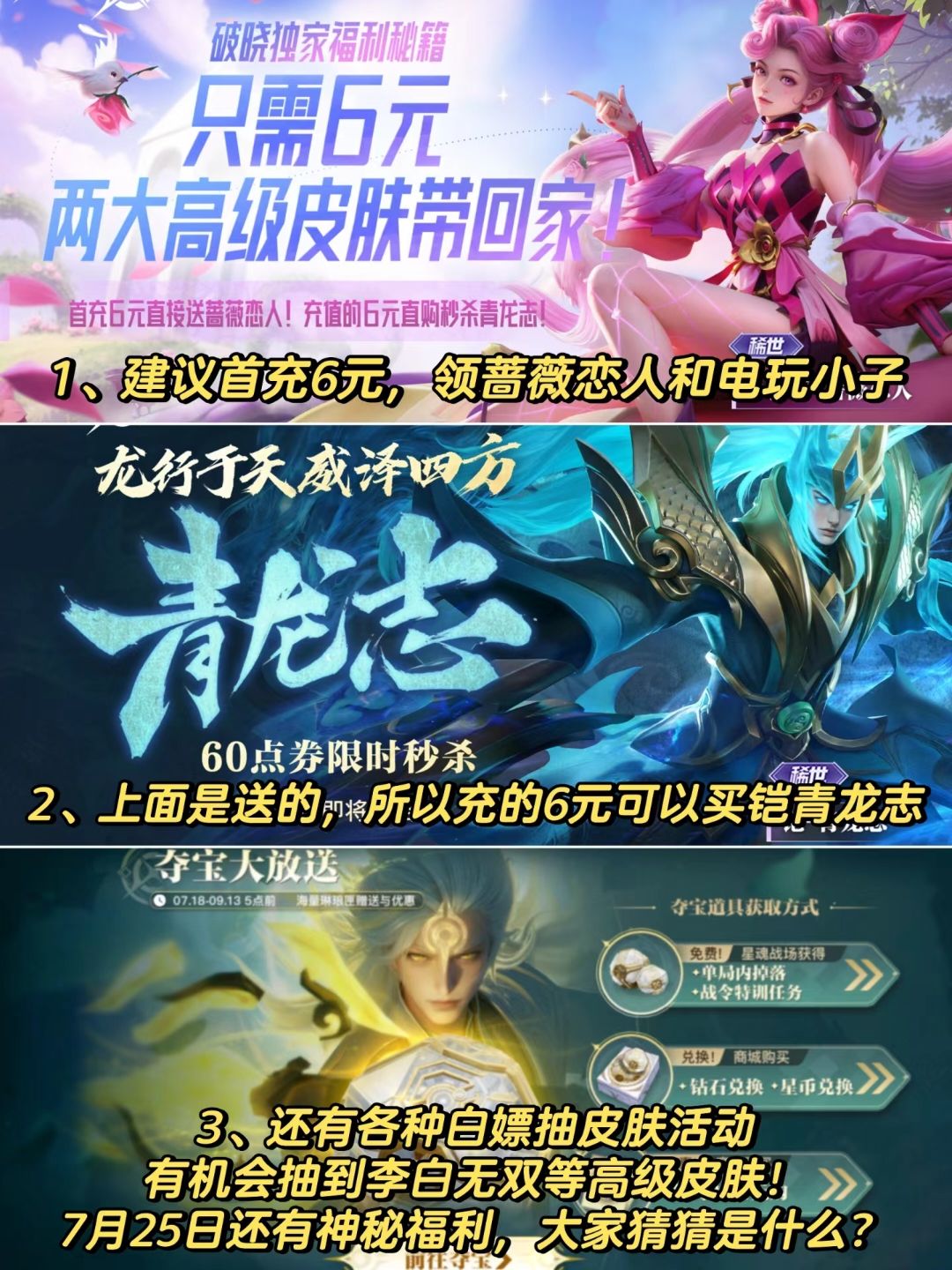 1、星魂战场送:李白千年之狐/后羿如梦令,二选一