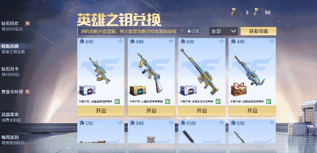 在限定幽临币区还可以兑换英雄之钥*5,正好可以参与钥匙兑换活动,不仅有多款王者武器的冰霜奇迹皮肤宝箱,还有双管猎枪-未来战士宝箱和手雷-云海游龙宝箱可以兑换,同时往期的钥匙兑换宝箱也返场了,想要M200-幻神的小伙伴也可以参与兑换。