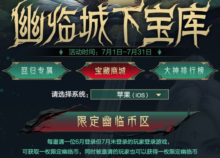 【活动速递】幽临城下宝库福利加码,限定幽临币区开启兑换
