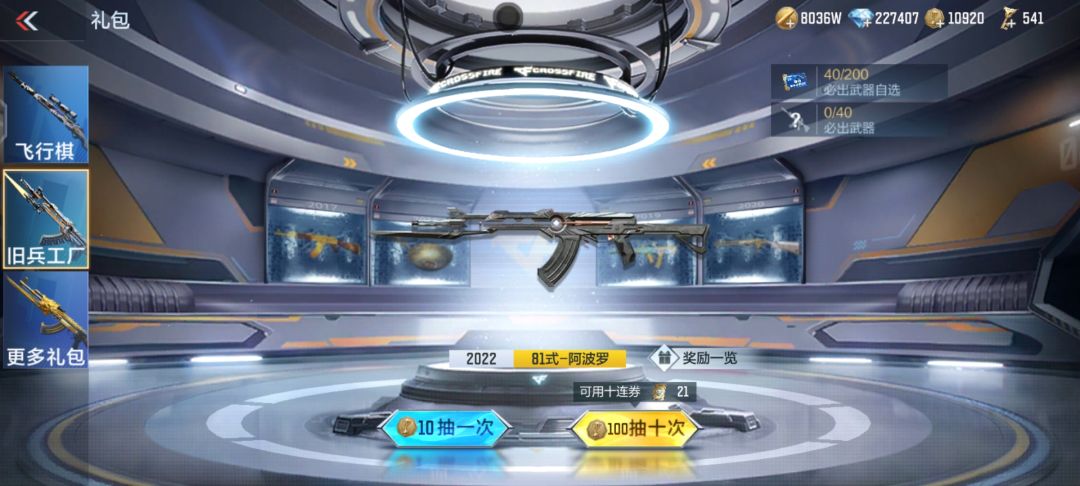 参与旧兵工厂抽奖有机会获得81-阿波罗武器,而且是保底200抽必出武器自选卡,所以小伙伴们只要有足够多的旧兵工厂十连抽券,就能获得武器自选卡,此次幽临币专区可以兑换旧兵工厂十连抽券*10,加上高级幽临币专区的10次兑换机会,大家想要获得武器自选卡还是很轻松的,有需要的小伙伴可以前往兑换。
