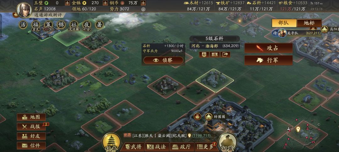 第一个就是攻占土地,打你当前能打过的最高等级的土地,要看一下战报的兵力战损,如果损耗太大就打低一级的,反正前期还可占领的土地数比较多,能打的地都打掉