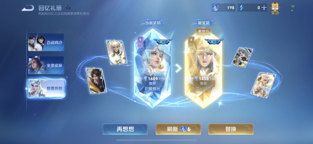 在回忆礼册上线了限定皮肤之后,玩家突然发现回忆之证不够用了。本来回忆之证只能用来刷新免费史诗皮肤,大多数玩家的回忆之证都还有多余。但是在限定皮肤上线之后,玩家为了刷到心仪的八折限定皮肤,往往刷新了好几百回忆之证还是没有刷新出来。