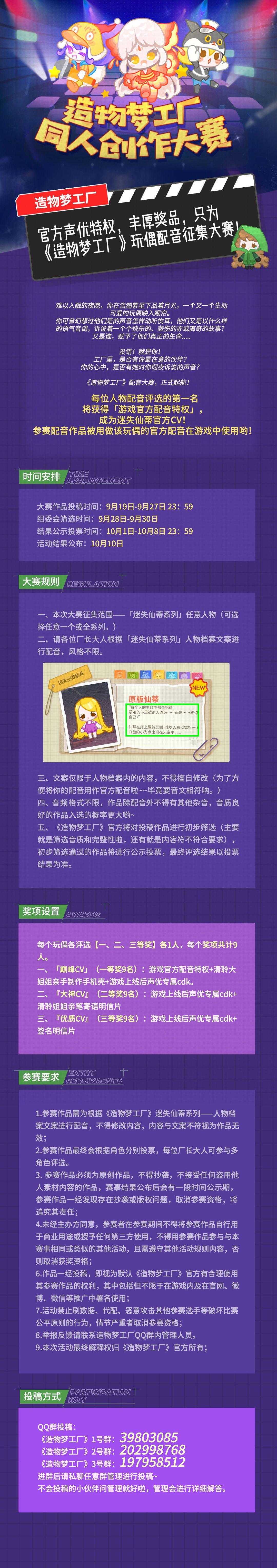【活动活动】9月19日开始!官方声优特权,丰厚奖品,只为《造物梦工厂》玩偶配音征集大赛!