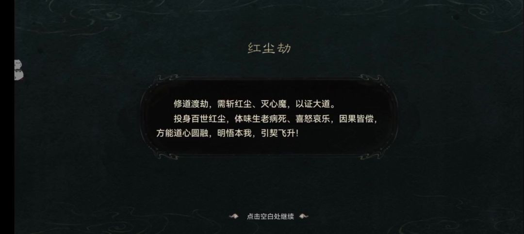 进入红尘劫后,就是上述画面,还挺好看的。