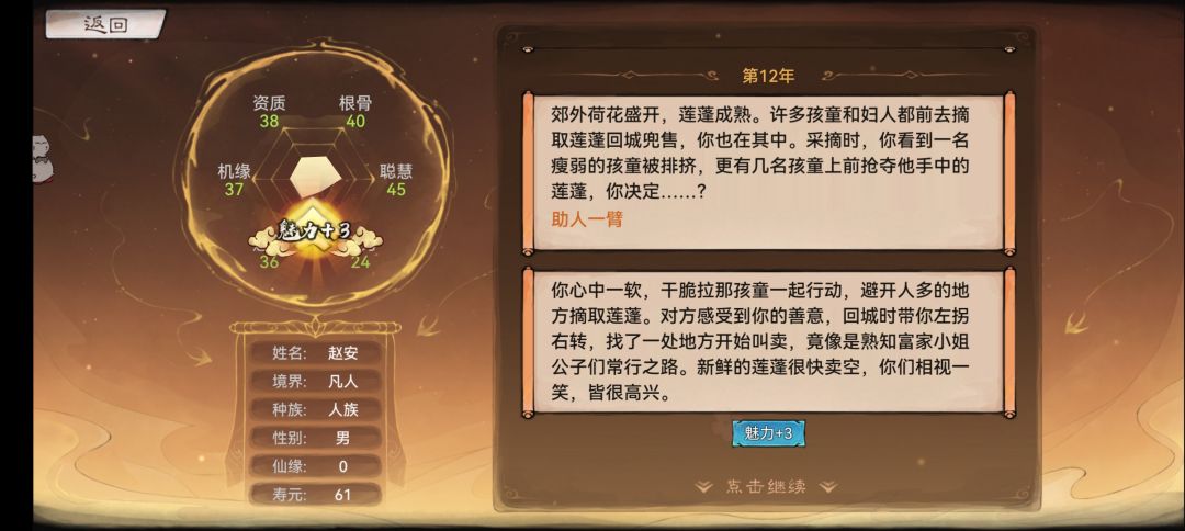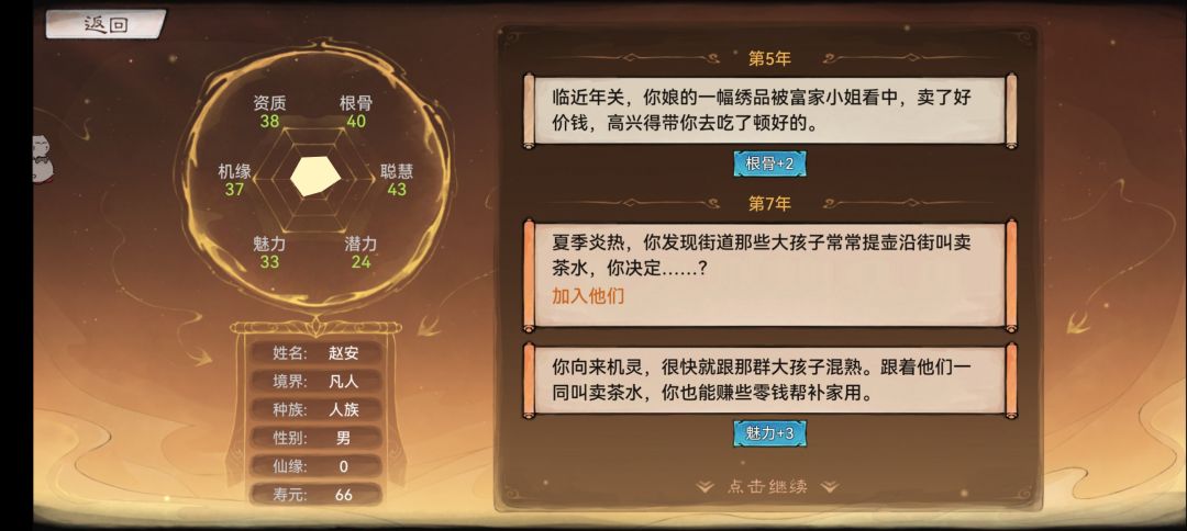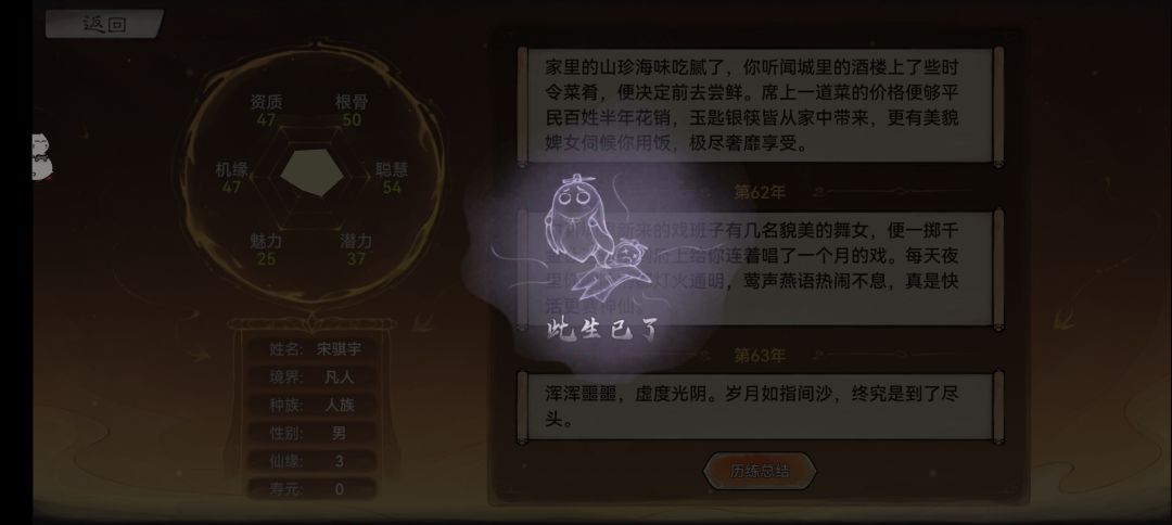 结束的时候,会根据人生表现进行评分,分数会积累,可以换奖励。