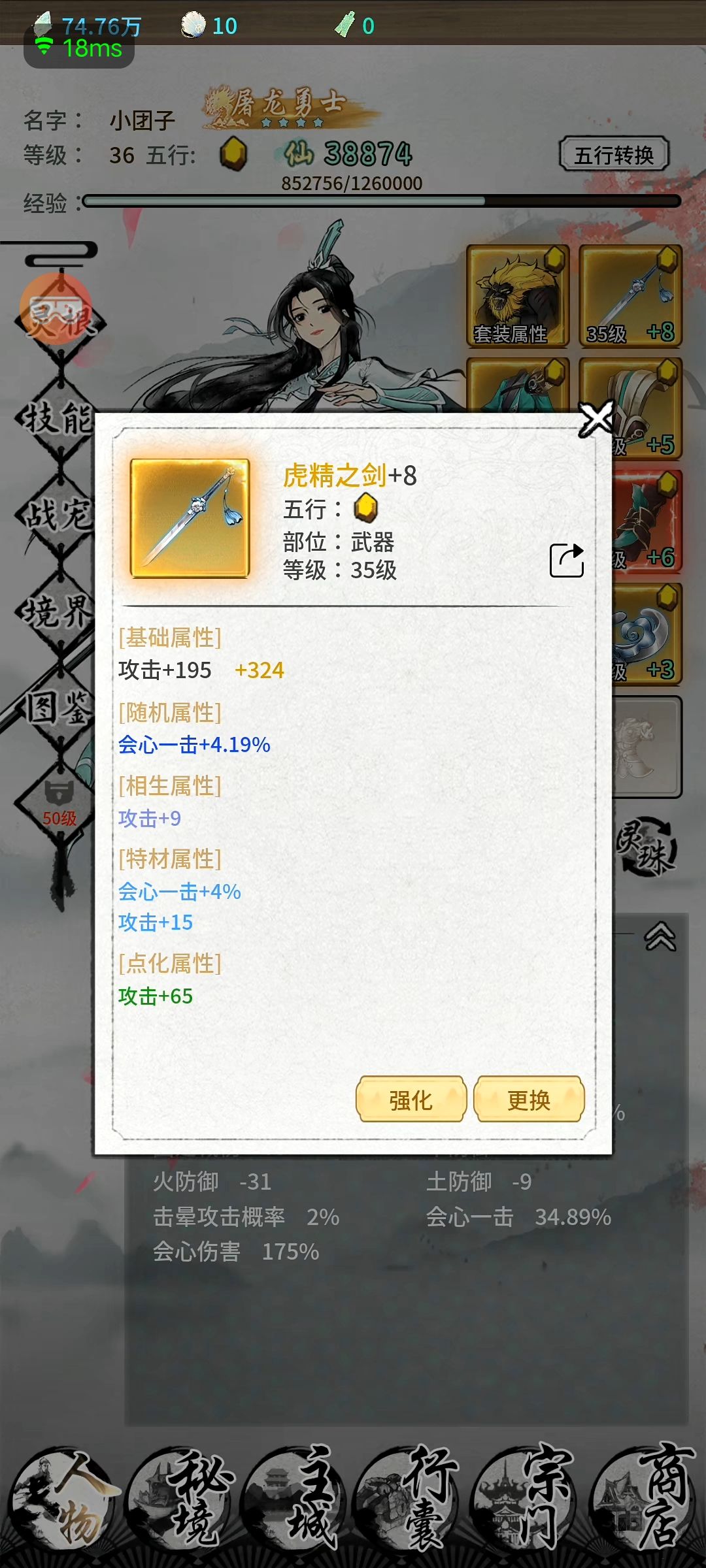 再来说下金的职业特点:会心一击(暴击率),反弹(反伤),金的伤害来源无非是反伤和暴击伤害,前期装备获取容易,打造成本低,从40级开始装备获取难度稍微增大,而从40级出现了极具特色的装备-功勋装备,功勋装备数值比幻境装备数值偏高,获取的话是只有唯一途径擂台争霸,通过功勋换取材料,而且材料品质随机性也很大,金、红品质概率很低,所以40级装备从选择,打造,还有特殊材料,相生材料的利用,一定要考虑清楚,是走暴击路线还是反击路线,暴击路线装备偏重攻击,暴击概率,装备优先选择攻击或者暴击的特殊材料进行打造,技能配合火事半功倍,反击路线则侧重于血量,防御,减伤,技能再搭配土,反击效果大大增加。