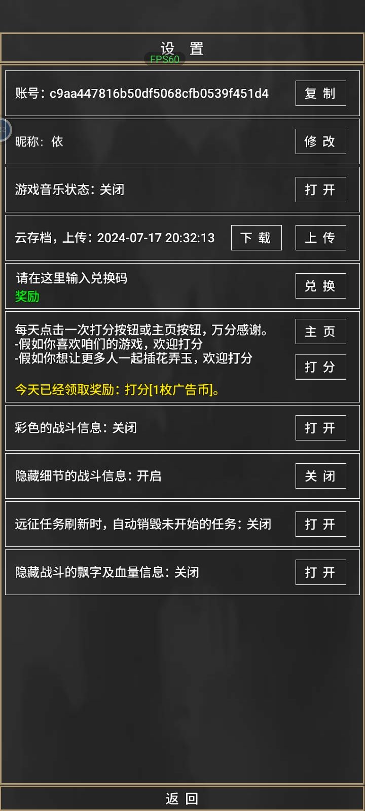之后就是主角的技能,装备的洗练和强化,设置里面打分的一个广告币和大厅里的勾栏抽奖以及每日签到都会提高你的实力