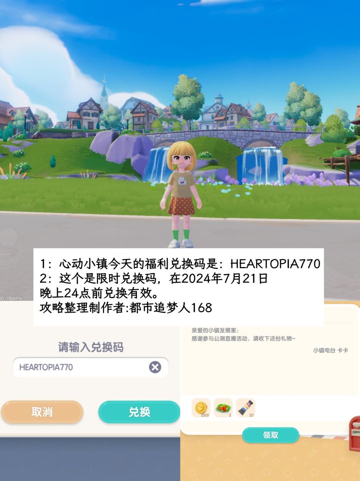 1:心动小镇今天的福利兑换码是:HEARTOPIA770