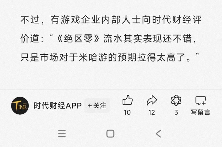 时代财经:业内认为《绝区零》表现符合预期