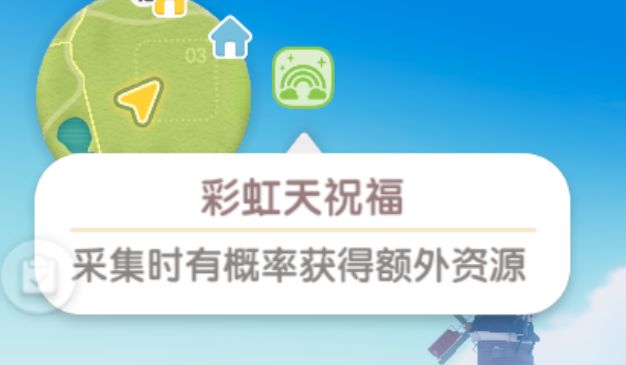 彩虹时的彩虹祝福有概率增加砍树、采集灌木的数量。