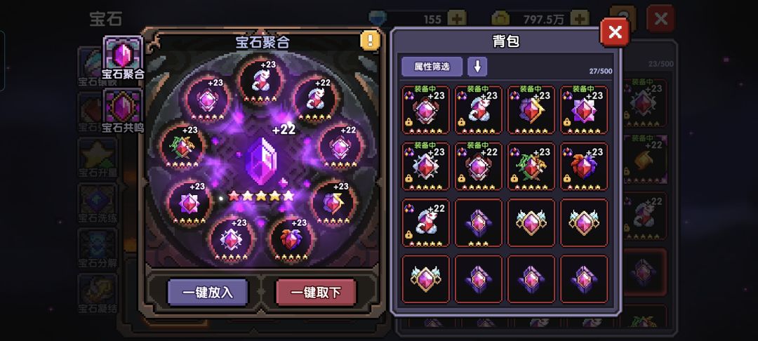 另外,魔神石的升星将是你以后需要投入大量时间精力的地方,详细请看下文的宝石聚合模块