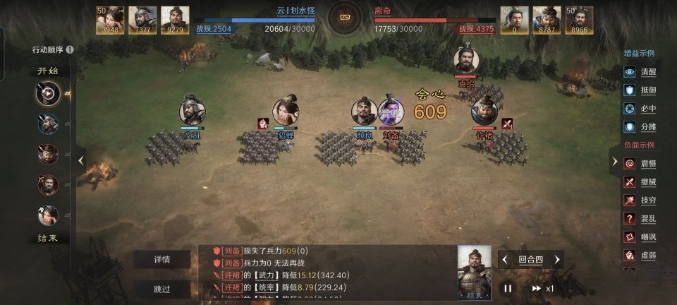 特别鸣谢给本文提供素材的玩家朋友,他的游戏ID名为“云丨划水怪”。他在世界公频里分享的战报,是以貂蝉在前排,颜良文丑二人做后排的箕形阵队伍,团灭刘备、许褚和袁绍组成三势队。其中被誉为三谋首席奶爸的刘备,在第四回合就遭到颜良的速杀。此战内涵了哪些亮点,下文就进入详尽的分析阶段。
