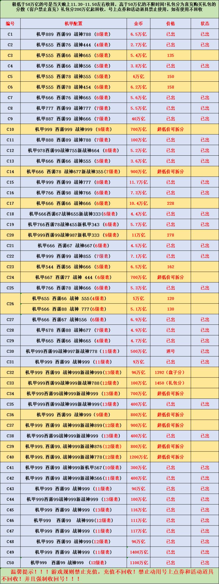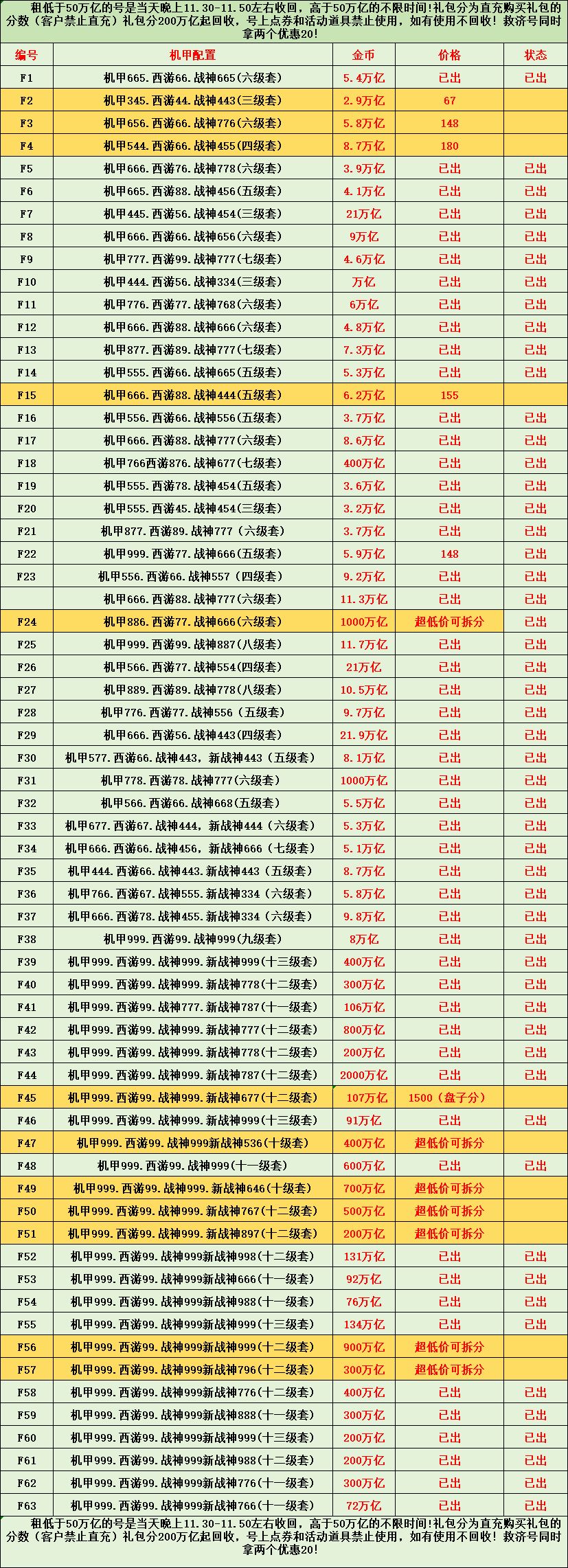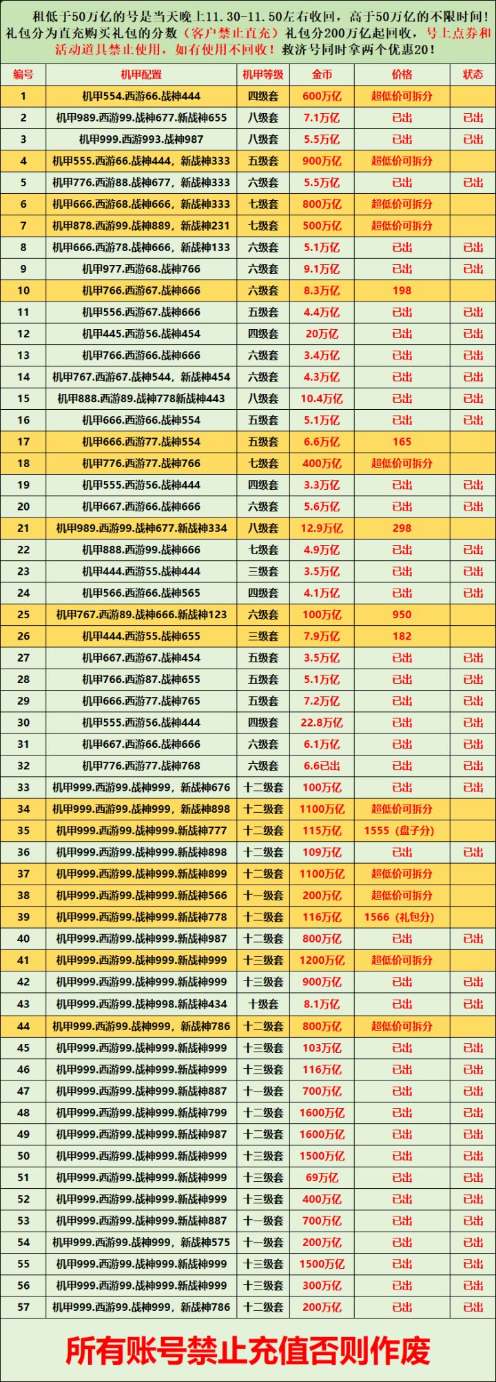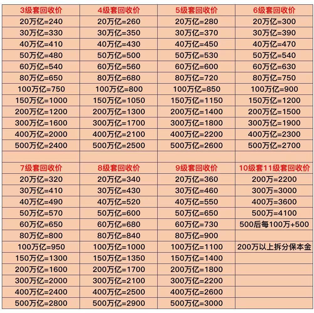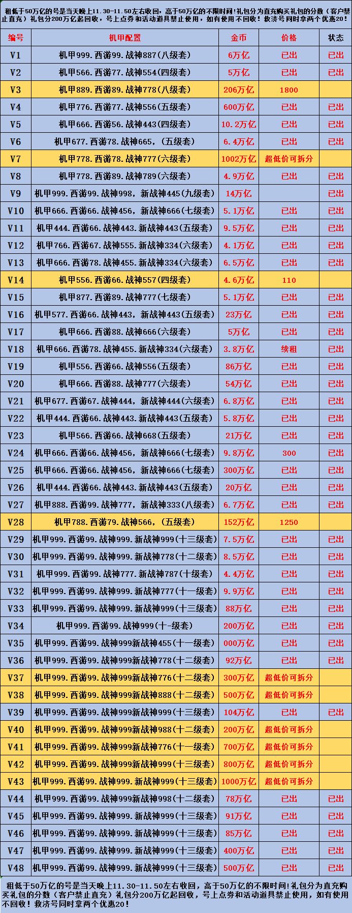 3到13级官方机甲号,万亿到千万亿数量多多,回收高