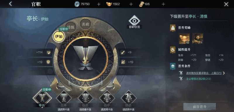 一、主线副本,只有到达指定的副本才能有获取晋级官阶的资格。