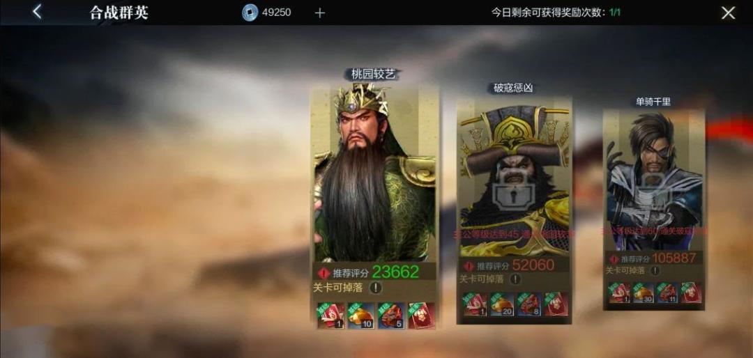 然后是合战群英副本,内含丰富的奖励,皮肤兑换券就主要从这里产出,如图所示。