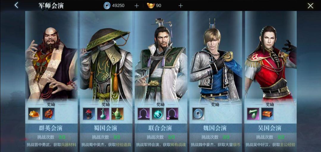 最后为大家介绍的是军师会演副本,奖励极其丰富,大部分基础材料都可以在该副本中获取,因为军师副本的难度与奖励是跟随百花关卡数提升的,所以再一次强调了百花的重要性。