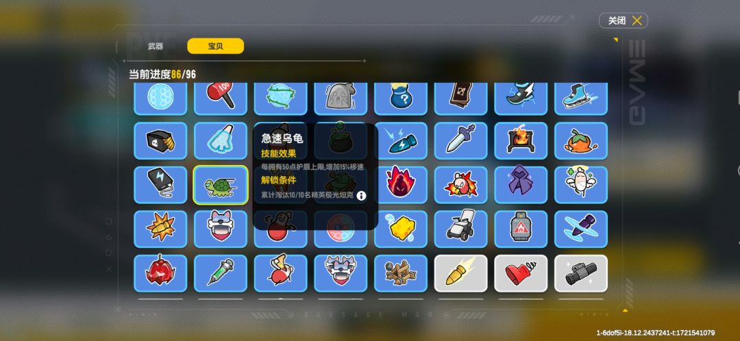 然后咱们可以选择铁皮鸡蛋+铁盾+充能护盾+极速乌龟,移速进一步提升