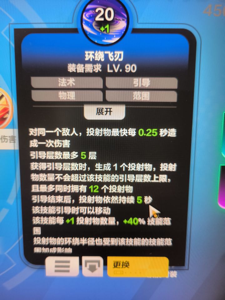 环绕飞刃:获得引导层数+1投射物数量,投射物数量不超过引导上限,且最多拥有12个投射物……