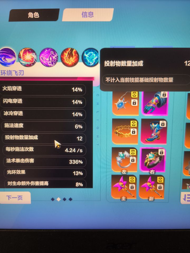 这面板说我投射物数量加成为12,是不是满了的意思?我我武器或者石板要是再打一个投射物数量,是不是对技能不会有任何提升??毕竟他说这个环绕飞刃最多十二个投射物
