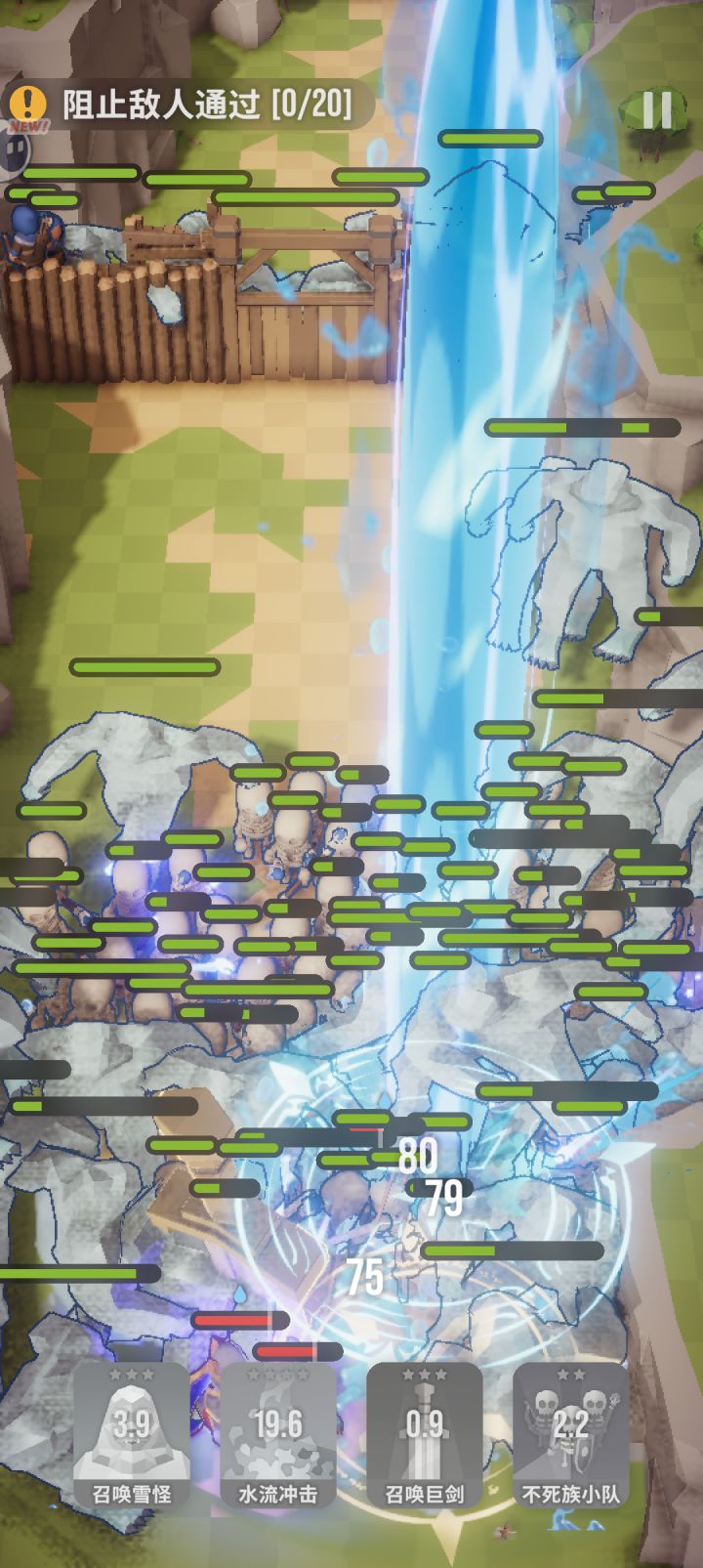 前期敌人血量少的时候尽量往前多填骷髅和雪人,雪人耐抗,成堆的骷髅叠远程。打的时候多用巨剑和长伤害宽范围的激流打治疗师