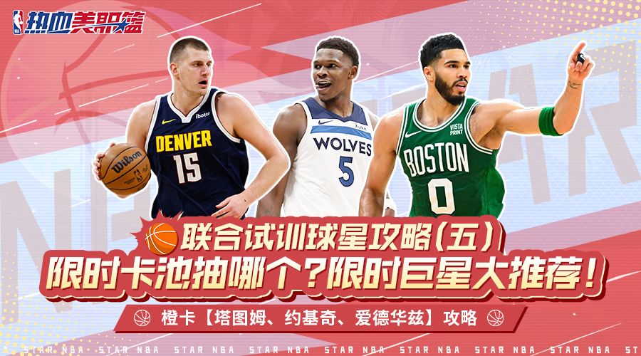 在《热血美职篮》中,每一位球星都有其独特的优势和特点,合理的选择和使用这些球员将帮助您在比赛中占据优势。希望本篇攻略能够帮助各位“巨星”更好地了解和使用爱德华兹、塔图姆、约基奇。本次联合试训还有更多强力球星等着您去发掘和培养!祝各位“巨星”们在《热血美职篮》联合试训中取得佳绩,称霸赛场!