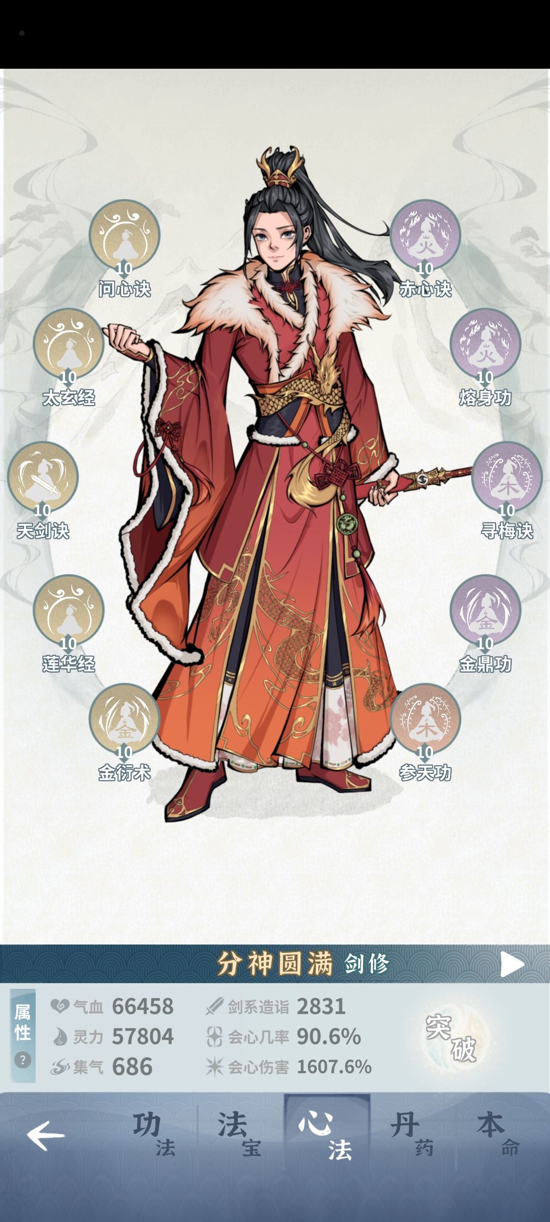装备凑合着穿,能打过梦魇一后,肝掉落粉会心,洗好其余三词条后,有剩余次数再去洗粉会心赌高数值。飞行装师弟和水剑用扇子洗出剑威、移速洗成血百或灵百,不用太在意词条等级,平均就好。