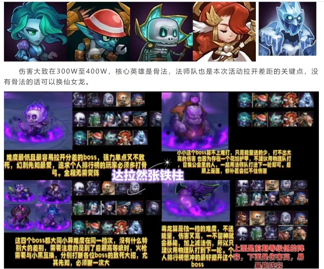 最后附上“小冰冰-达拉然张铁柱”的活动阵容一图流,更多更细致的“魔界讨伐”活动攻略,可以B站搜索学习!