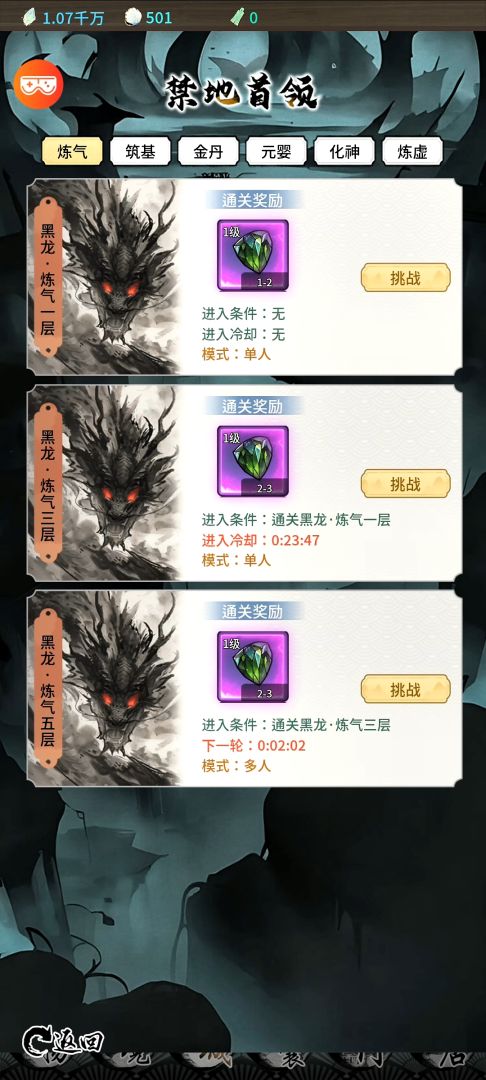 总共10层,每层一个敌人,打完十层获得100威望,可以换凝灵丹,加倍获取灵气,这个简单直接打就行,需要注意的是第一次打需要报名,在三点之前报名,过了时间就不能报名