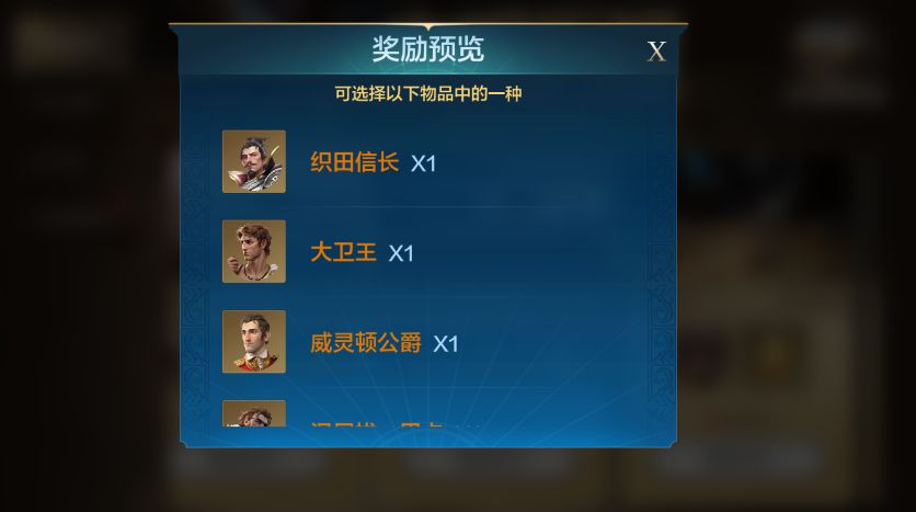 织田信长、大卫王、威灵顿公爵、汉尼拔·巴卡四选一。这四人中最推荐威灵顿公爵、其次是织田信长。威灵顿公爵自带穿透,有概率降低敌方防、智;防御高达101,整体在T0.5的水平。更难得可贵的是,他的拆解技能是避实击虚,T0级别的减伤技能。综合来看,他的性价比最高,他的专属头衔也非常出色。