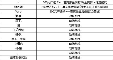 优秀作品奖NO2:500元严选卡+一套英雄金属徽章(全英雄)+烛龙u形枕