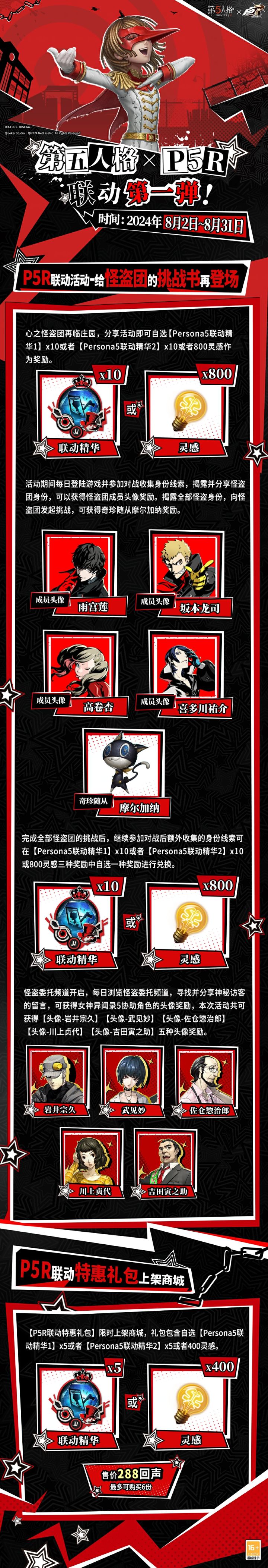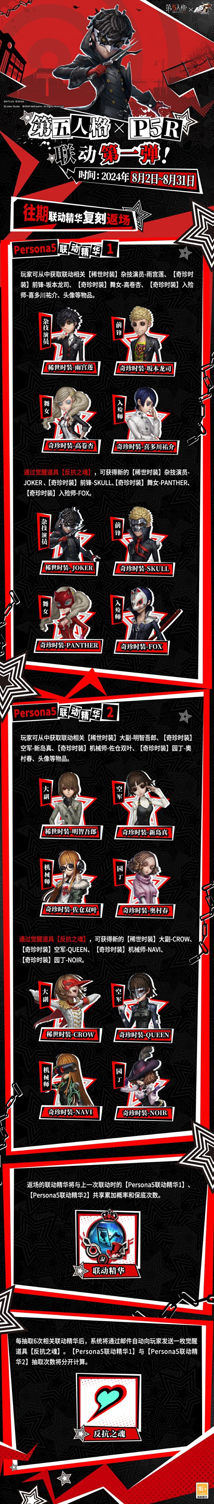 为了揭露真相、解放被压迫的灵魂, 心之怪盗们的正义行动即将展开! 第五人格×女神异闻录5皇家版 联动活动情报请查收~ #第五人格×P5R