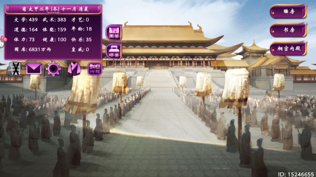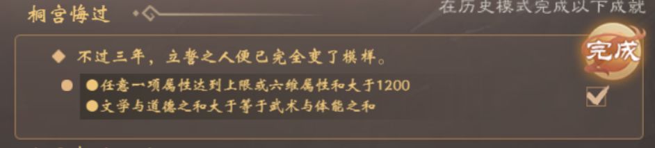 本纪二触发条件比较另类,别的帝卡都是刷多少多少属性,这个是要求六维属性全部归零,六维属性分别为文学、武术、才艺、道德、体能、皇威。