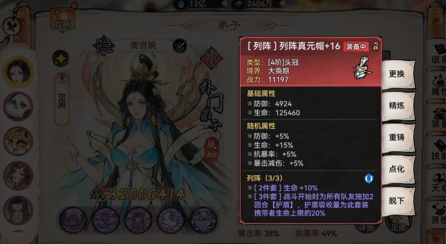 第三个问题:南宫婉的装备套装法宝推荐功法选择![[表情_吃瓜]](https://img.tapimg.com/market/images/d07b262774c8a022a7dddbc39683da6b.png)